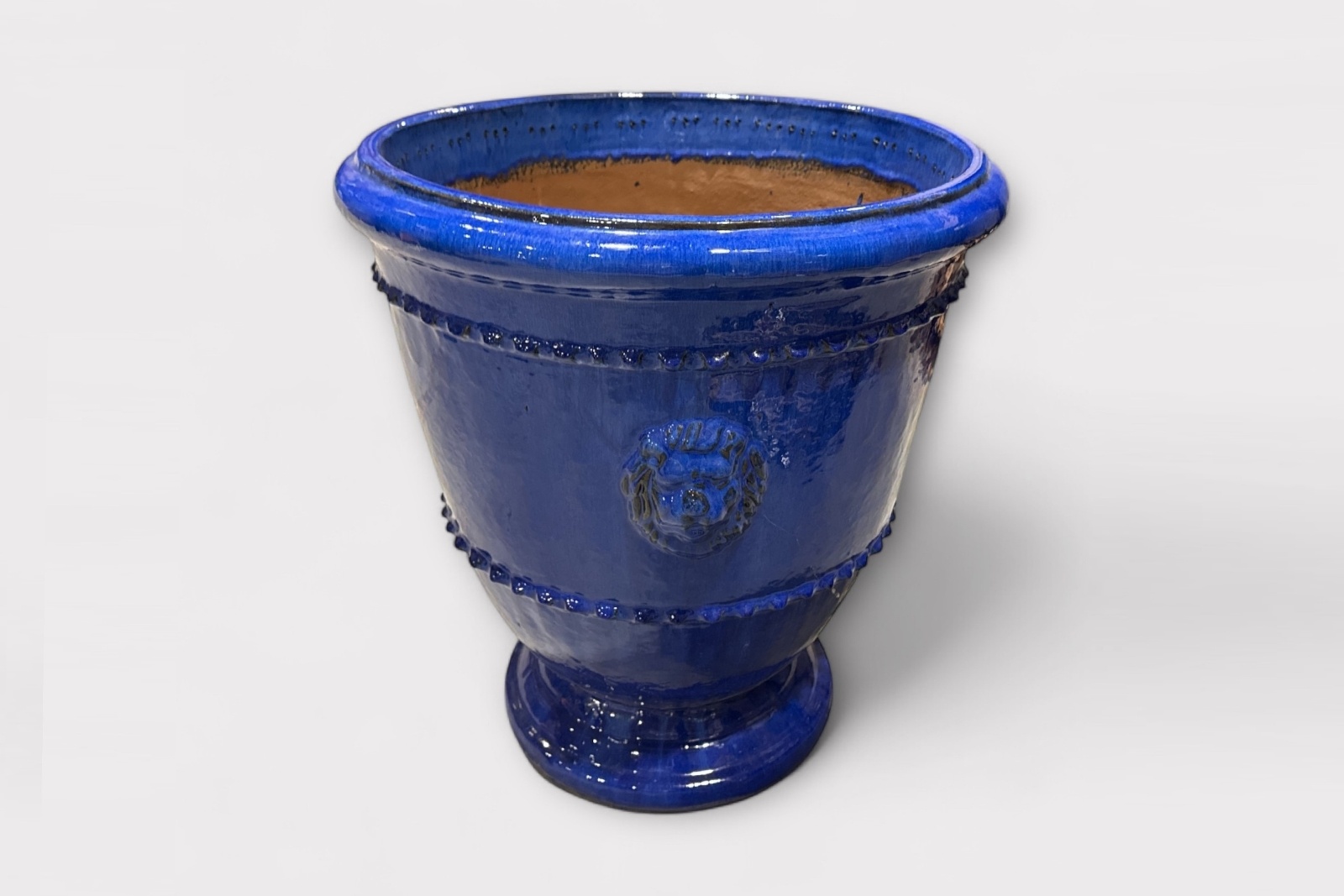 Home > Containers > Pots and ceramics > Outside pots > Anduze Ceramic Lion Head Pot Shiny Royal Blue D58cm H64cm