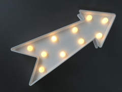 Arrow sign white plastic with 10 LED warm white hanging height 16cm width 40cm thickness 4cm