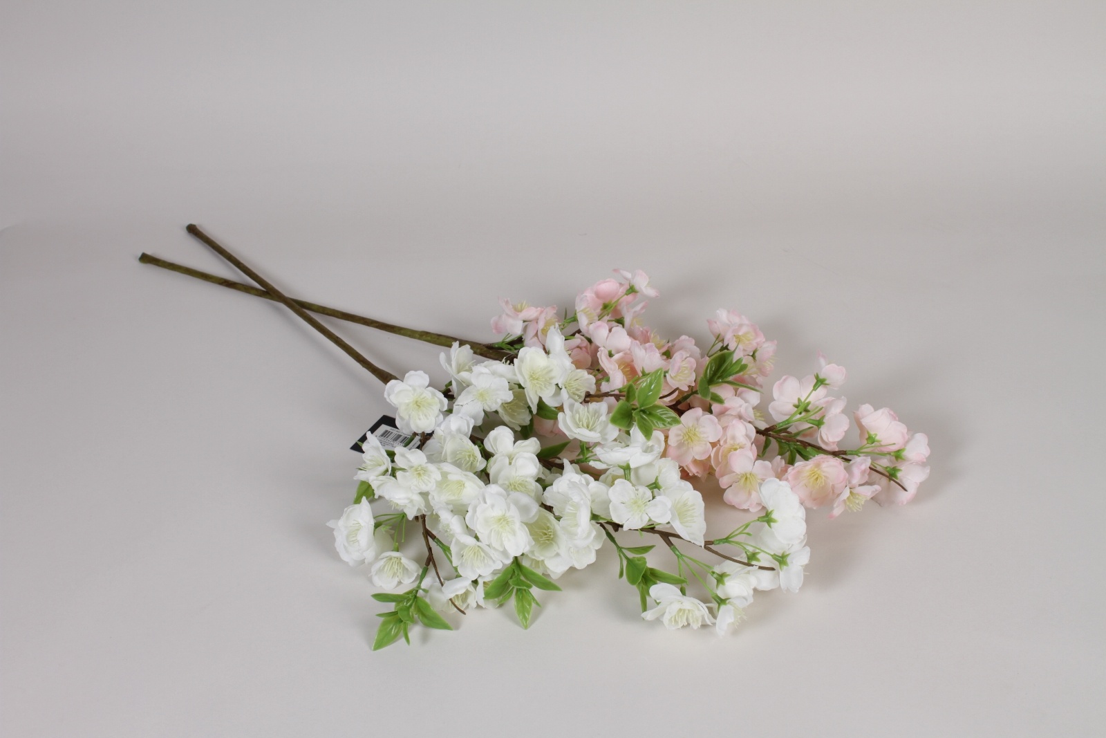 Artificial cherry blossom branch assorted white or pink height 70cm