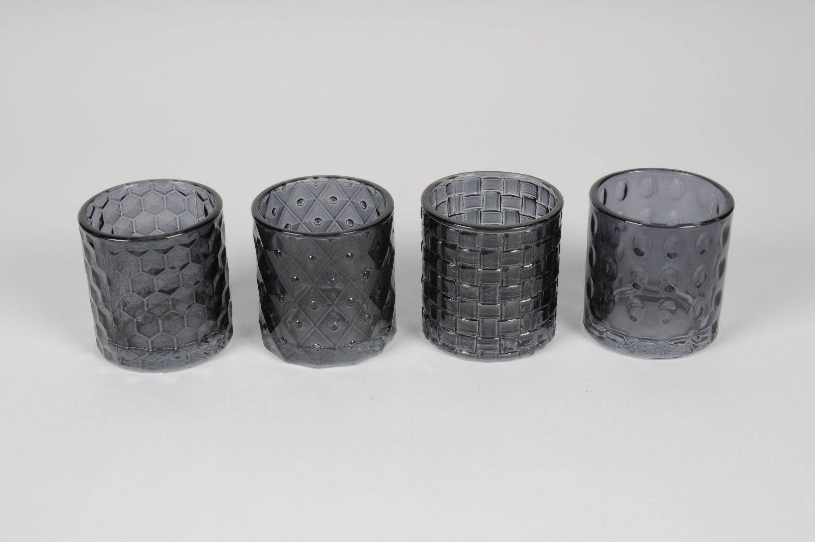 Assorted dark blue glass candle jar with 4 different designs diameter 7cm height 7.5cm