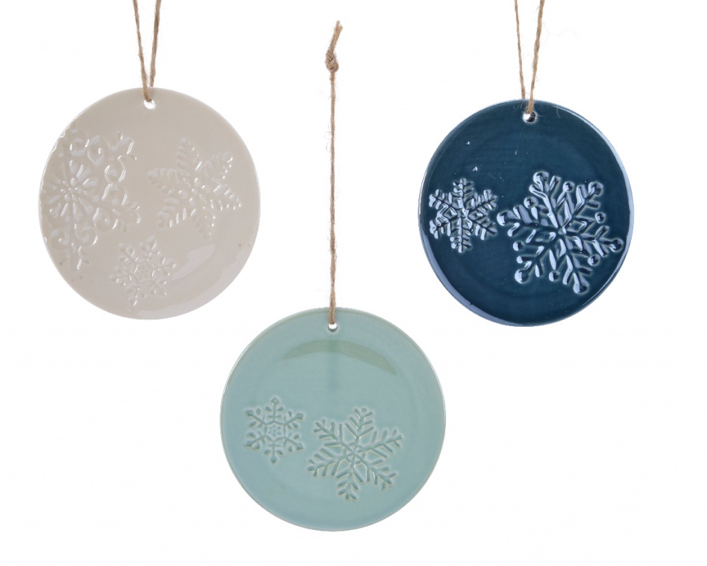 Assorted ceramic disk ornament thickness 0.5cm diameter 9cm Dark blue, light blue or white