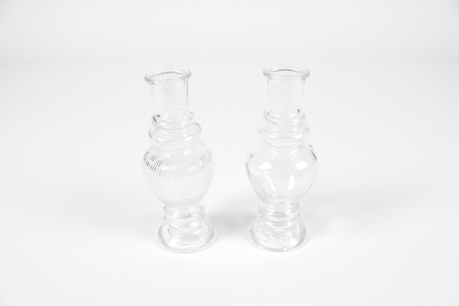 Assorted clear glass vase candle holder with different designs diameter 6cm height 16cmOpening diameter 2.5cm