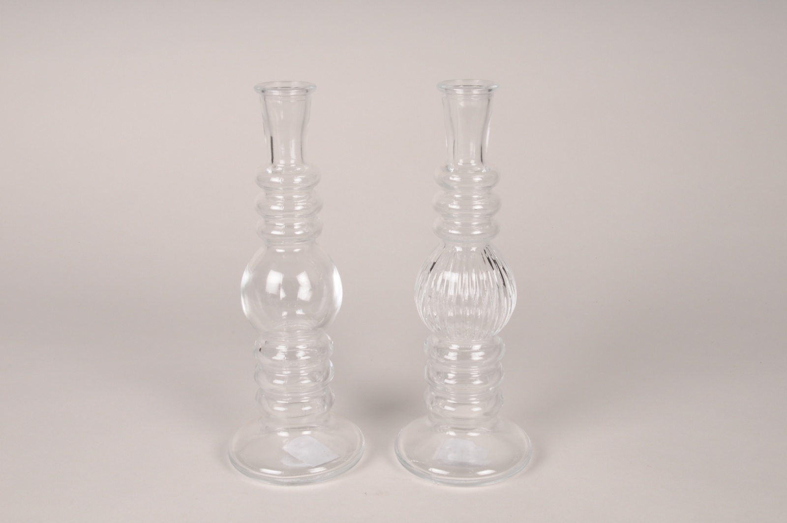 Assorted clear glass vase candle holder with different designs diameter 8cm height 23cm Opening diameter 2.5cm