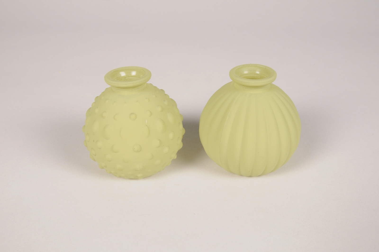 Assorted matte green glass vase with different design diameter 8cm height 8cm Opening diameter 2cm