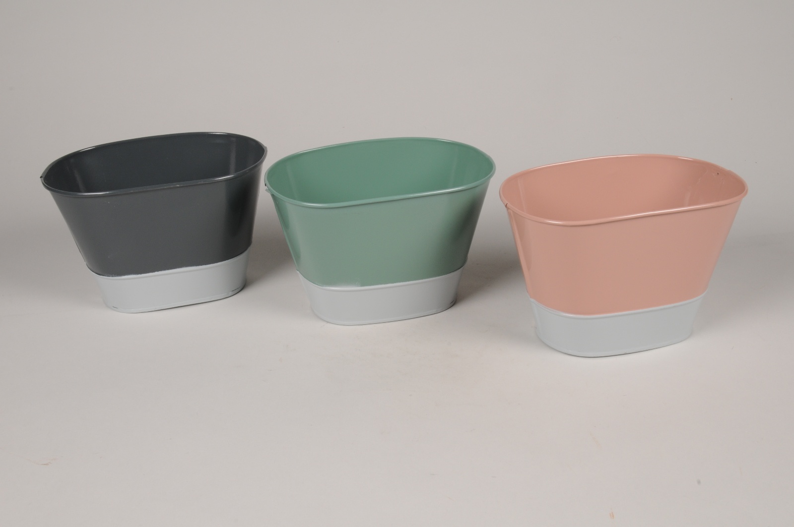 Grey, green and pink assorted zinc planterLength 18.5cmWidth 13cmHeight 12cmWatertightness not guaranteed
