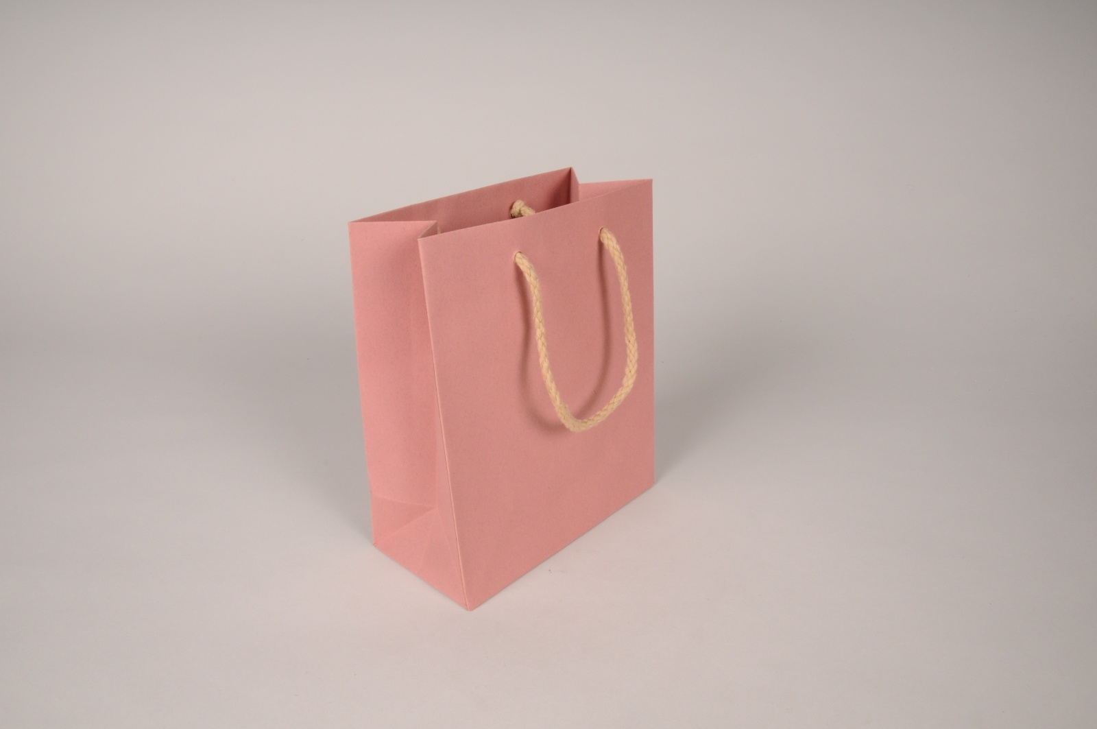Bag of 12 pink kraft with twisted handles bags width 16cm height 19cm Base 8cm