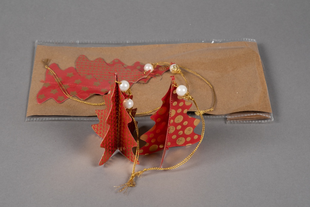 Bag of 6 red and gold paper trees deco diameter 8 cm height 10 cm