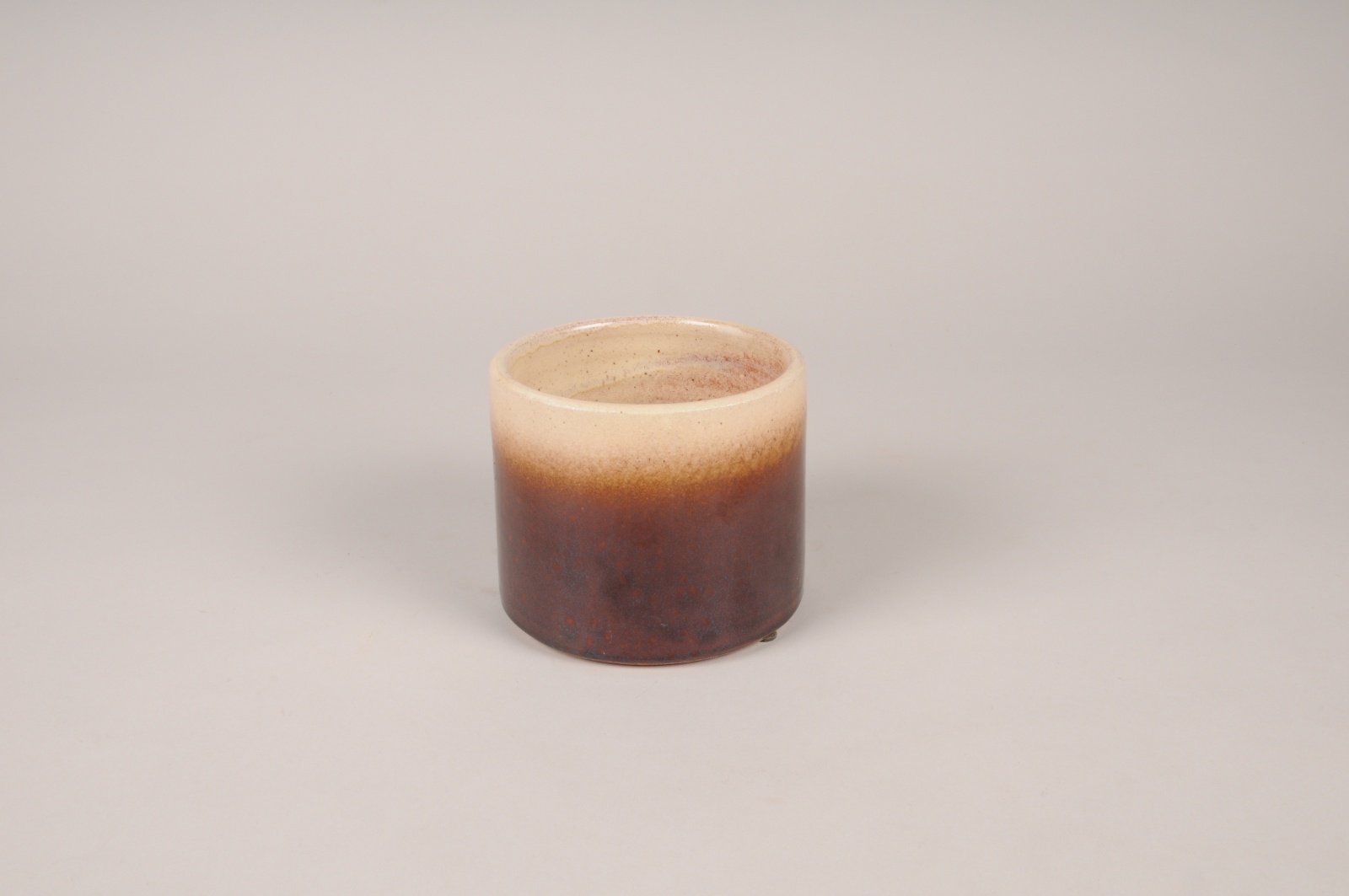 Brown red and beige glazed ceramic planter diameter 12.5cm height 11cmInside diameter 10cm