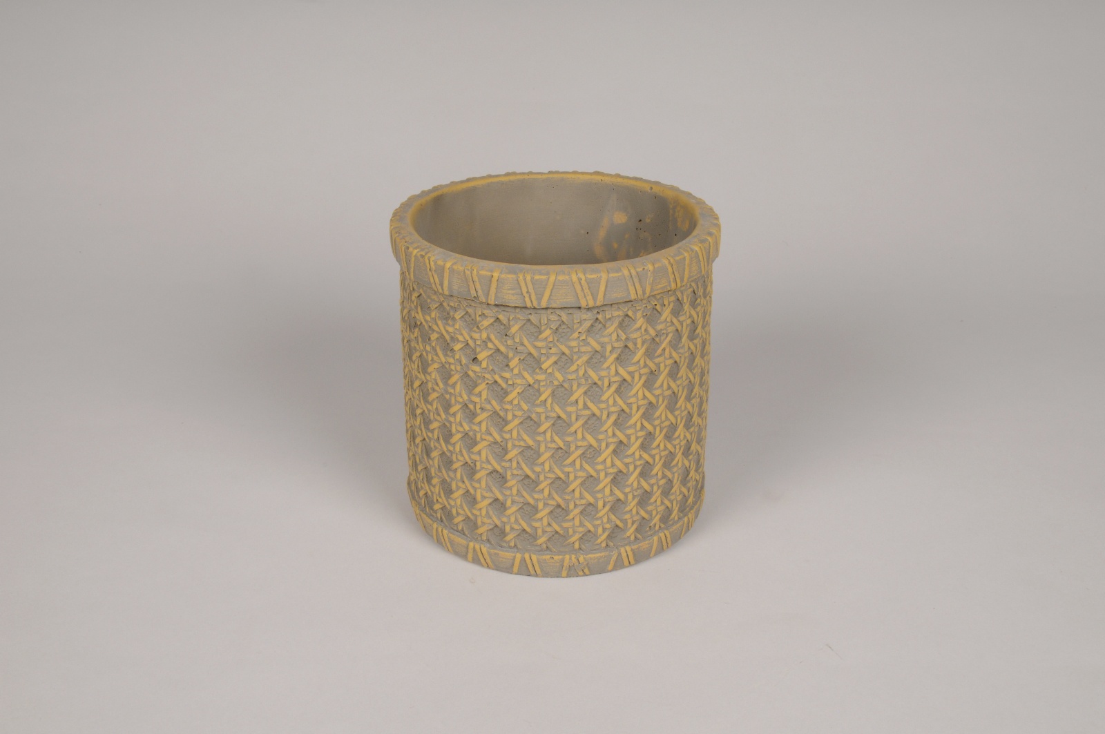 Beige concrete planter imitating canework diameter 18cm height 18cm