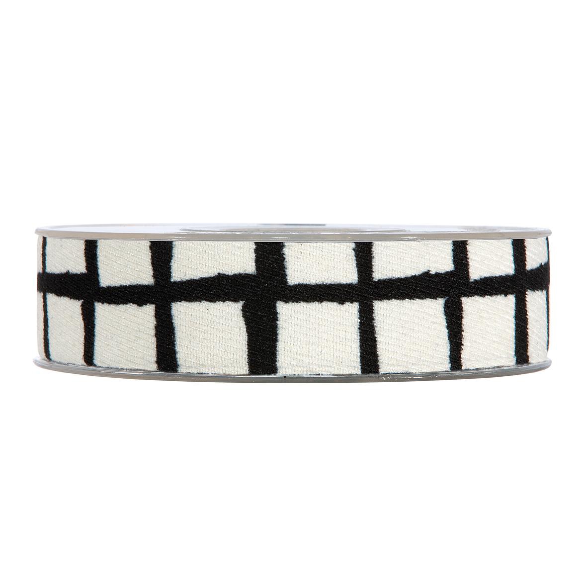 Black and white fabric ribbon vith geometrical pattern width 25mm length 10m