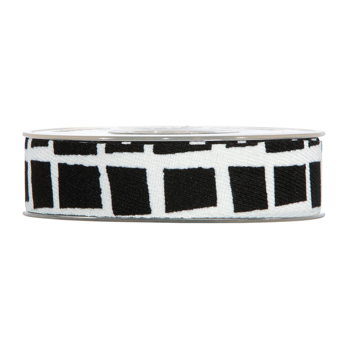 Black and white fabric ribbon with geometrical pattern width 25mm length 10m