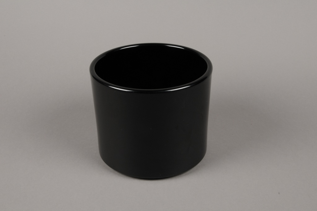Ref. : A8-000002 Black ceramic cylinder planter diamètre 17.5cm height 14cm