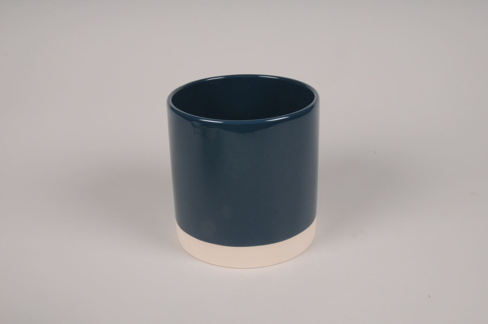 Blue cylindrical ceramic planter with white unglazed base diameter 15cm height 15.5cmInside diameter 14cm