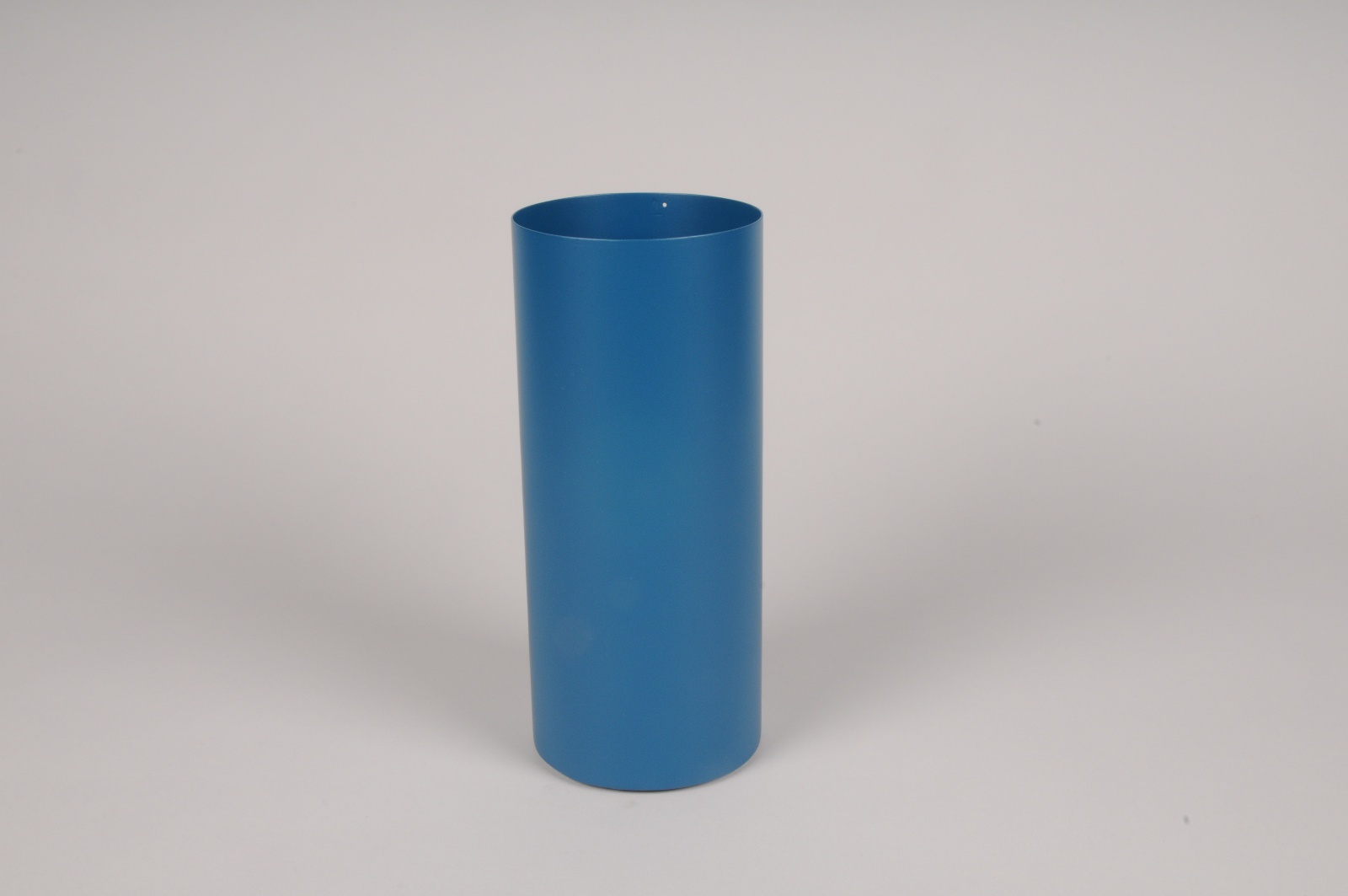 Blue metal cylindrical vase diameter 9.5cm height 22cm