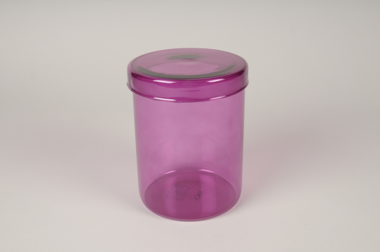 Bocal ou pot en verre violet avec couvercle diamètre 12cm hauteur 16cm