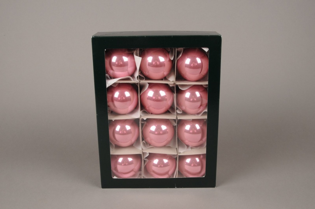 Boîte de 12 boules en verre brillant rose diamètre 6cm