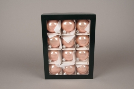 Réf. : T1-000052 Boîte de 12 boules en verre brillant rose poudré diamètre 6cm
