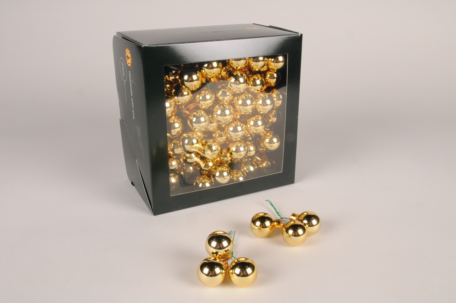 Boîte de 144 boules en verre brillant or diamètre 25mm