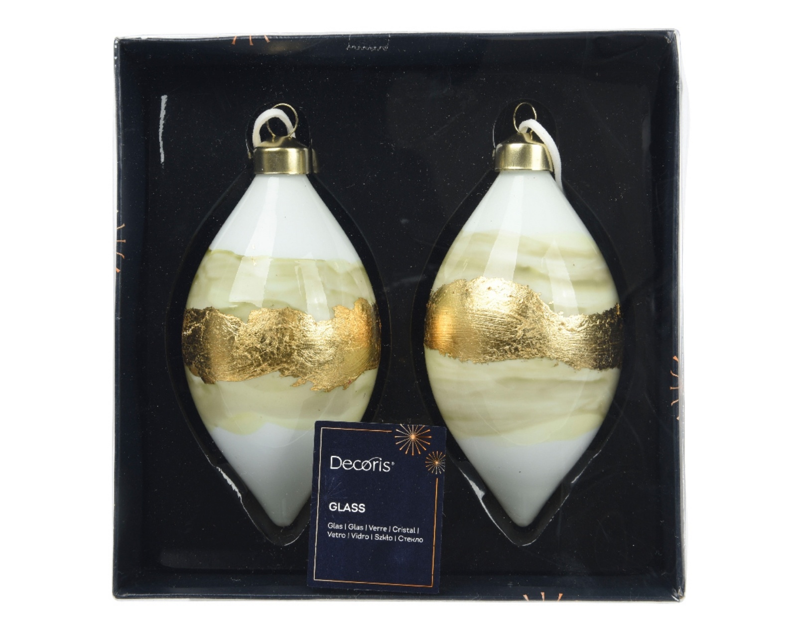 Boite de 2 gouttes en verre blanc avec ligne verte et ligne de feuille d'or diamètre 6cm hauteur 11cm
