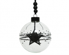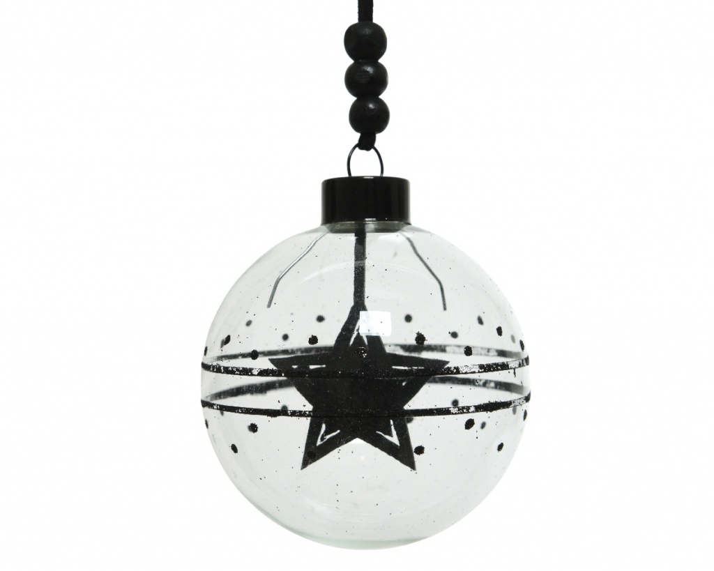 Boîte de 3 boules en verre transparent avec motif étoile en cuir noir à suspendre diamètre 8cm