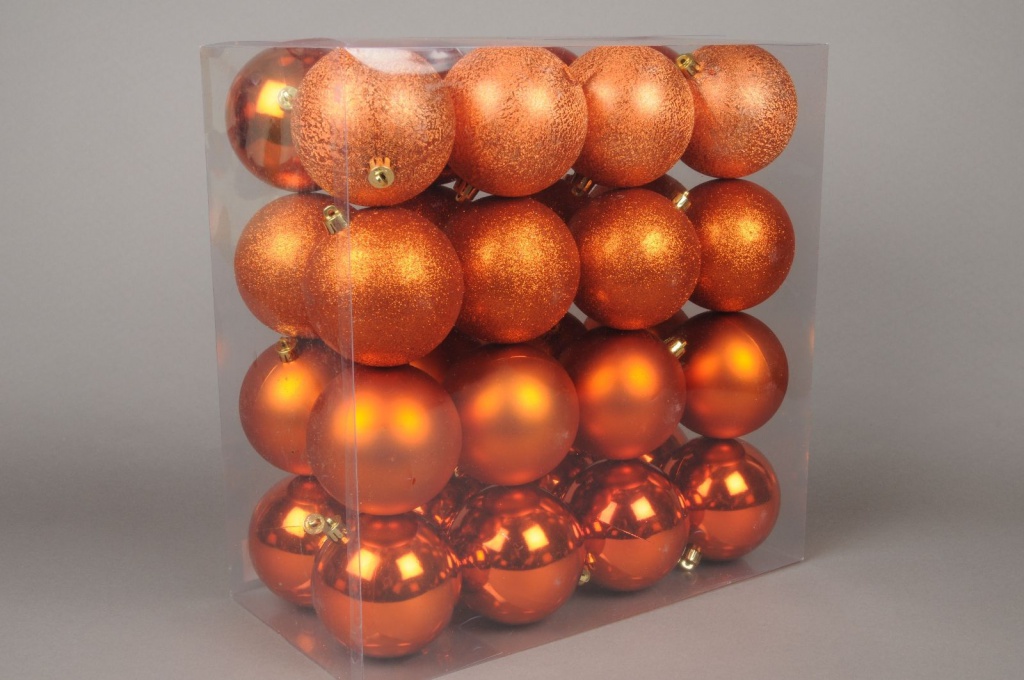 Boîte de 32 boules en plastique cuivre diamètre 10cm