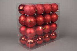 Boîte de 32 boules en plastique rouge diamètre 10cm