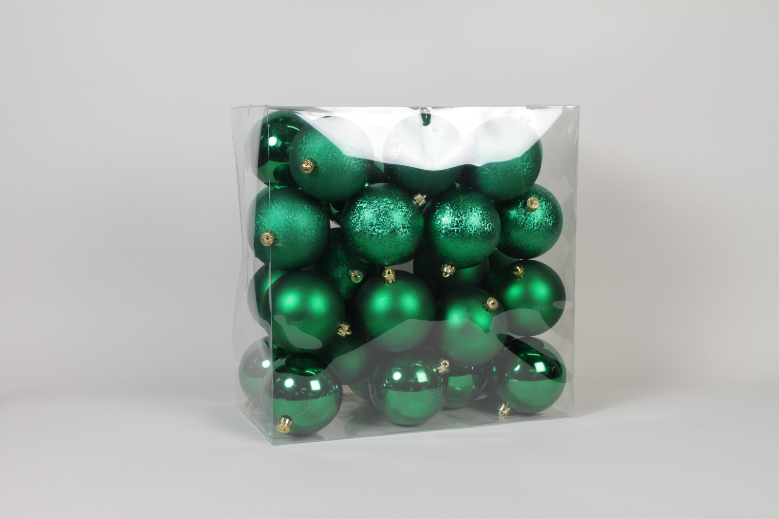 Boîte de 32 boules en plastique vert diamètre 10cm