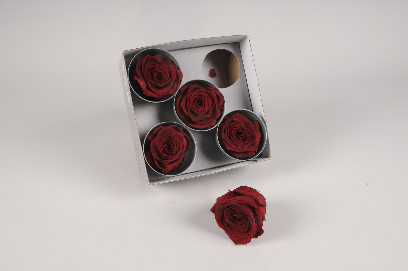Boîte de 5 roses stabilisées ou roses éternelles rouge bordeaux diamètre 6cm hauteur 7cm