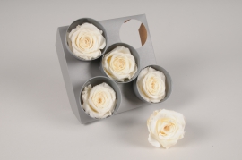 Boîte de 5 roses stabilisées ou roses éternelles crème diamètre 6cm hauteur 7cm