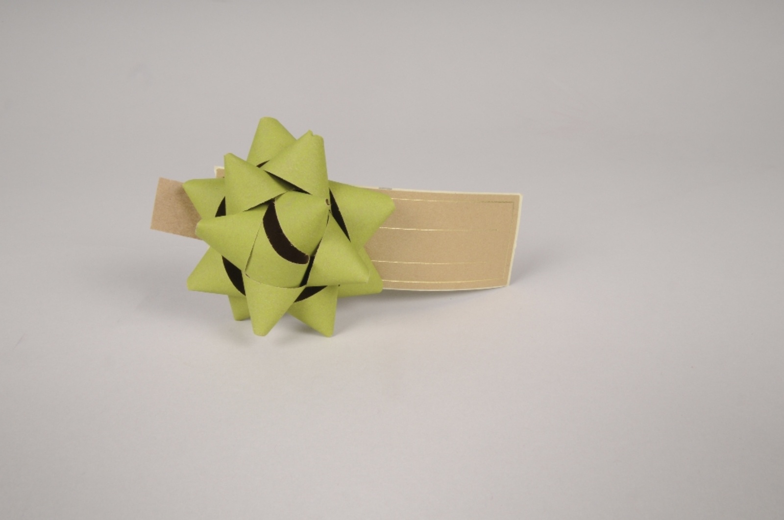 Boîte de 50 nœuds en papier vert mat en forme d'étoile sur une étiquette adhésive