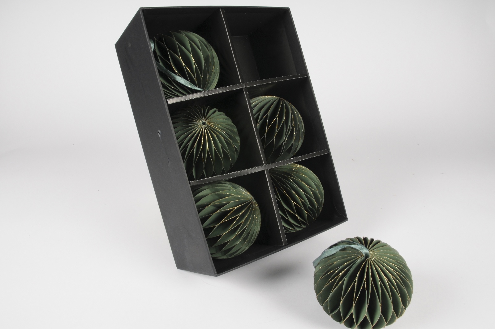 Boîte de 6 boules de Noël en papier vert D10cm