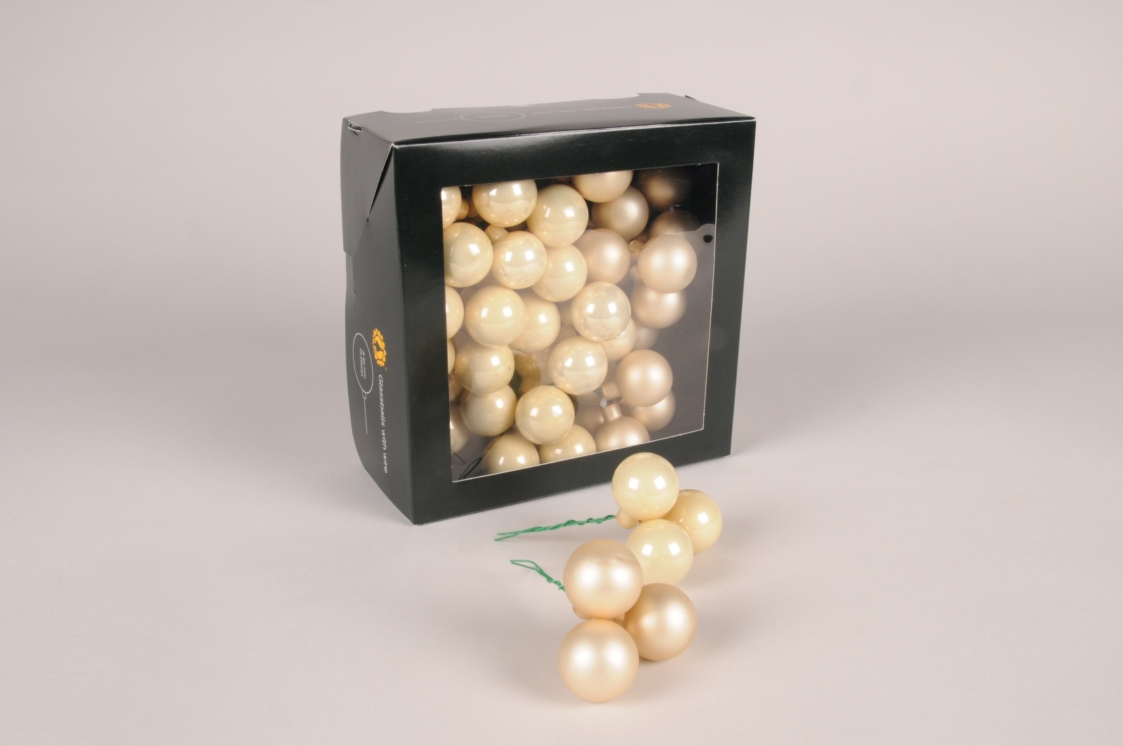 Boîte de 72 boules en verre mat et brillant champagne diamètre 30mm