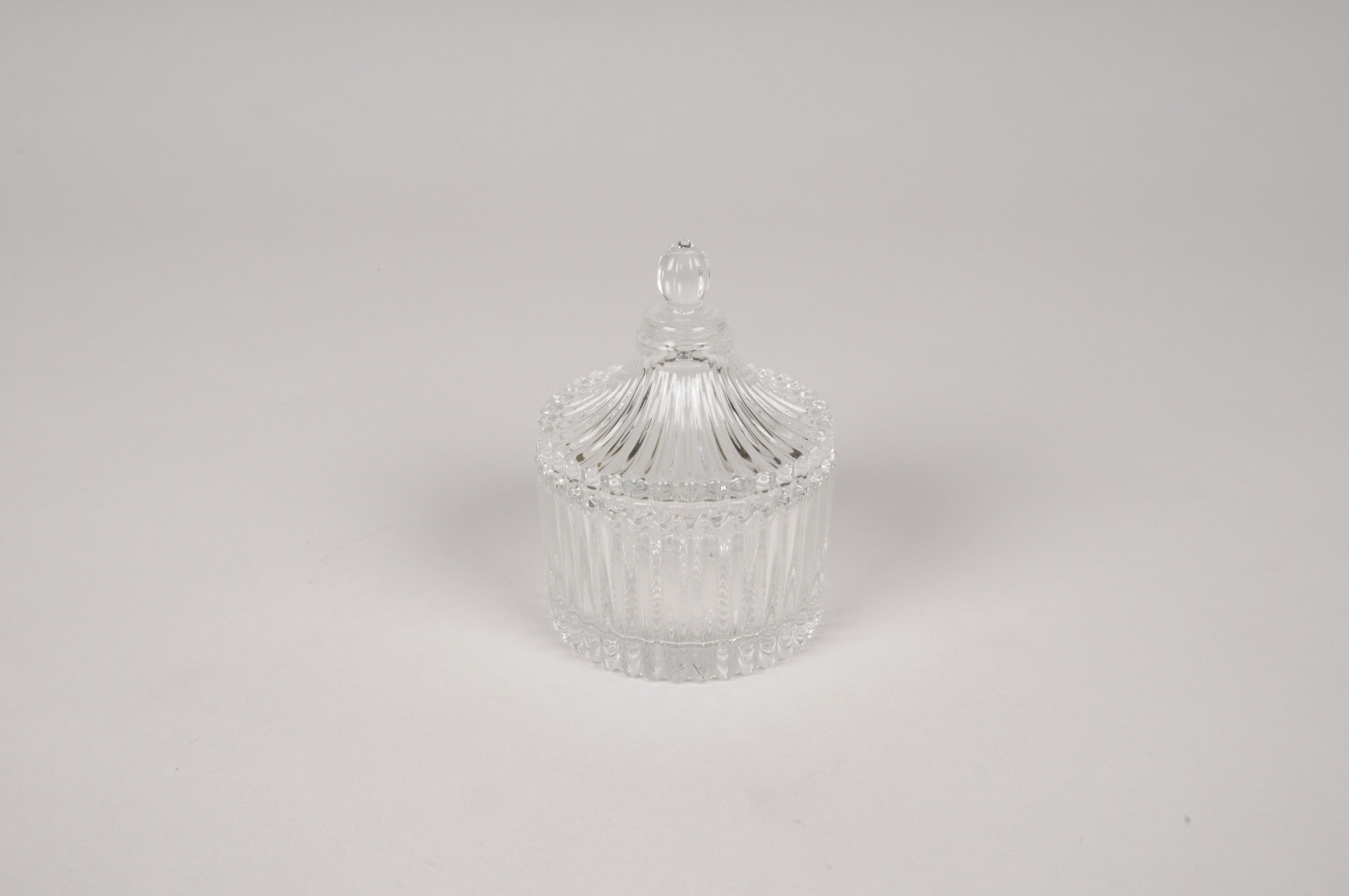 Bonbonnière en verre strié transparent diamètre 6.5cm hauteur 9cm