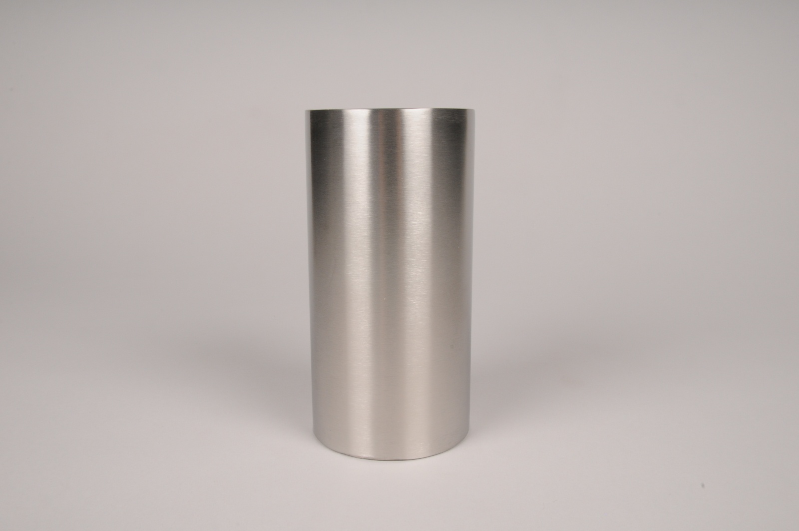 Bougeoir cylindre métal argent D7.5cm H15cm