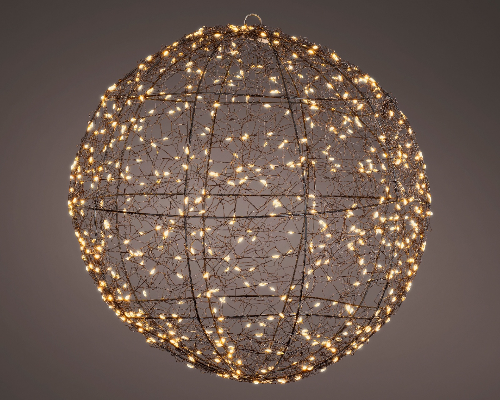 Boule en métal 600 LED ambre avec minuteur diamètre 38cm