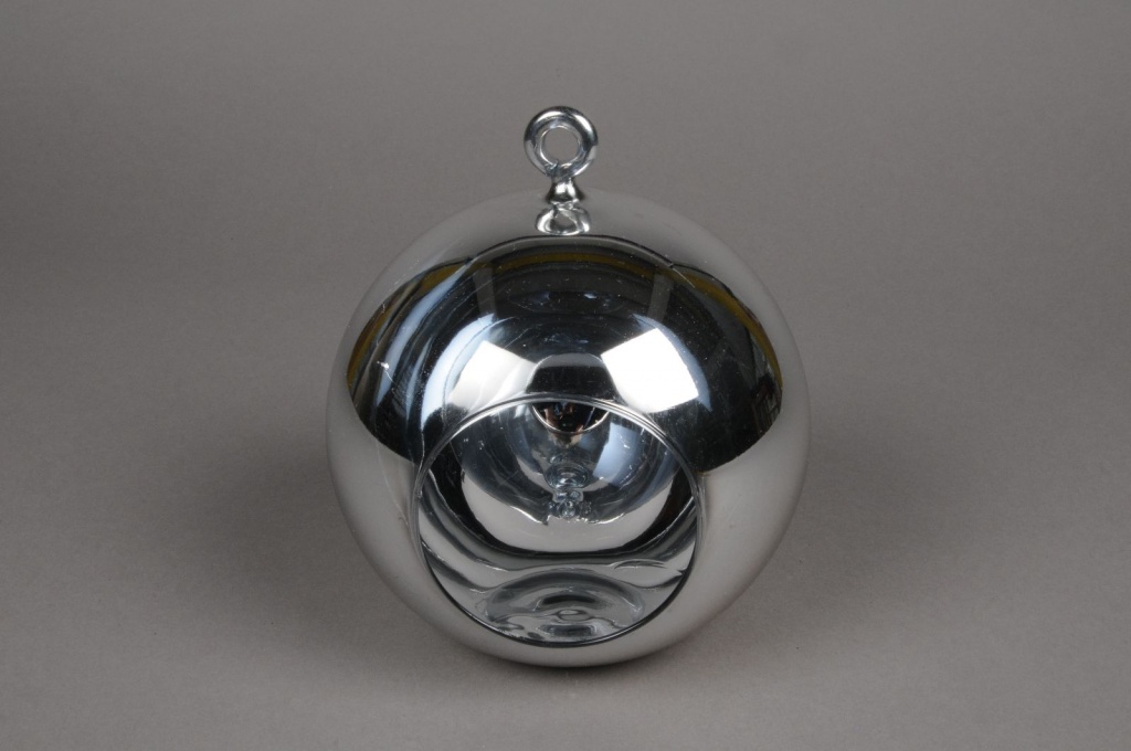 Réf. : K9-000003 Boule en verre argent à suspendre avec une ouverture diamètre 10cm hauteur 11cm