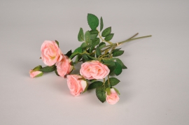 Bouquet de roses branchues artificielles rose clair hauteur 35cm