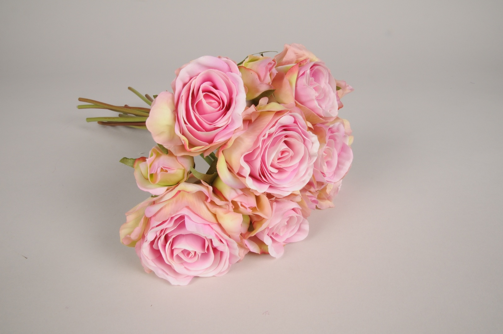 Bouquet de 7 roses artificielles roses diamètre 5cm et de 6 roses en bouton diamètre 2.5cm