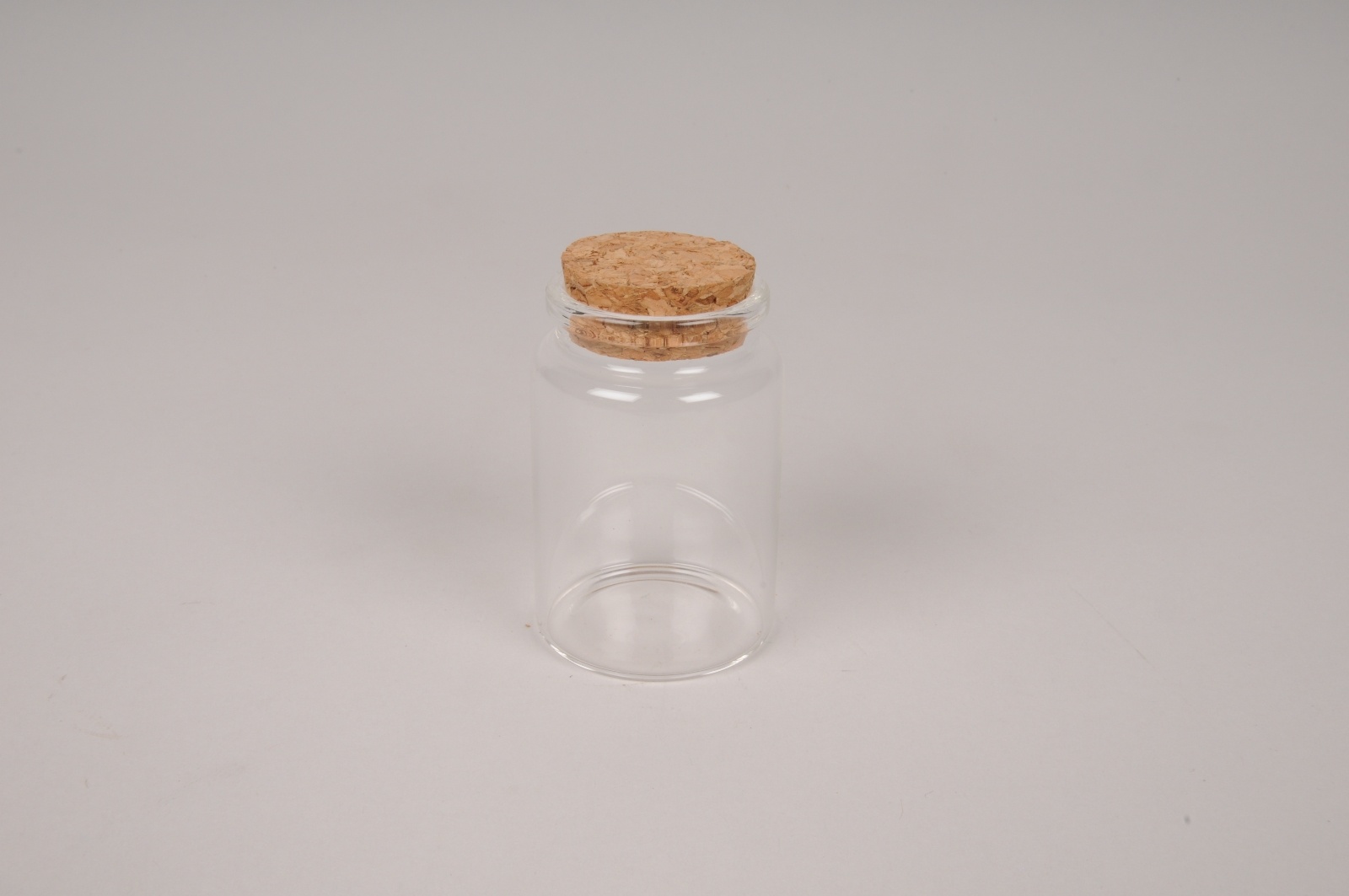 Box of 12 clear glass tubes with cork diameter 4.5cm height 7cm Opening diameter 3.5cm Cork size diameter 3.5cm height 1.5cm