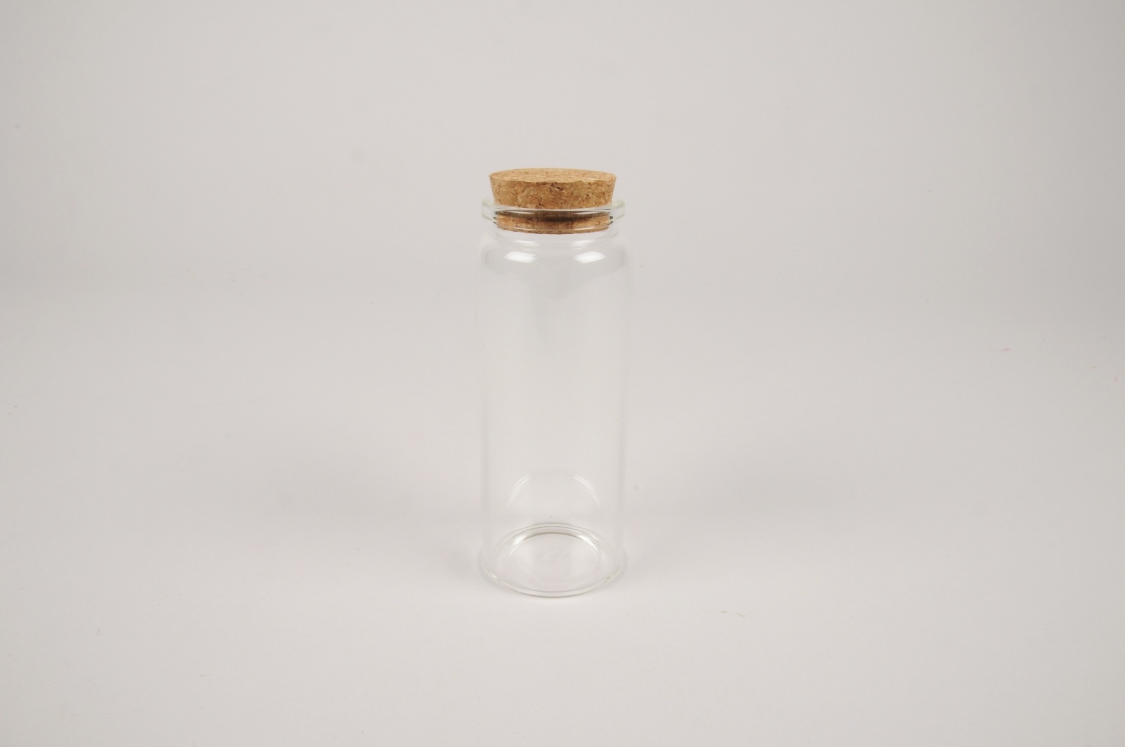 Box of 12 clear glass tubes with cork diameter 4.5cm height 13cm Opening diameter 2.5cm Cork size diameter 3.5cm height 1.5cm