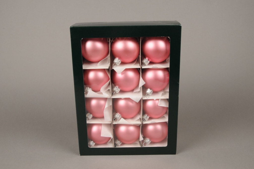 Box of 12 matte pink glass balls diameter 6cm