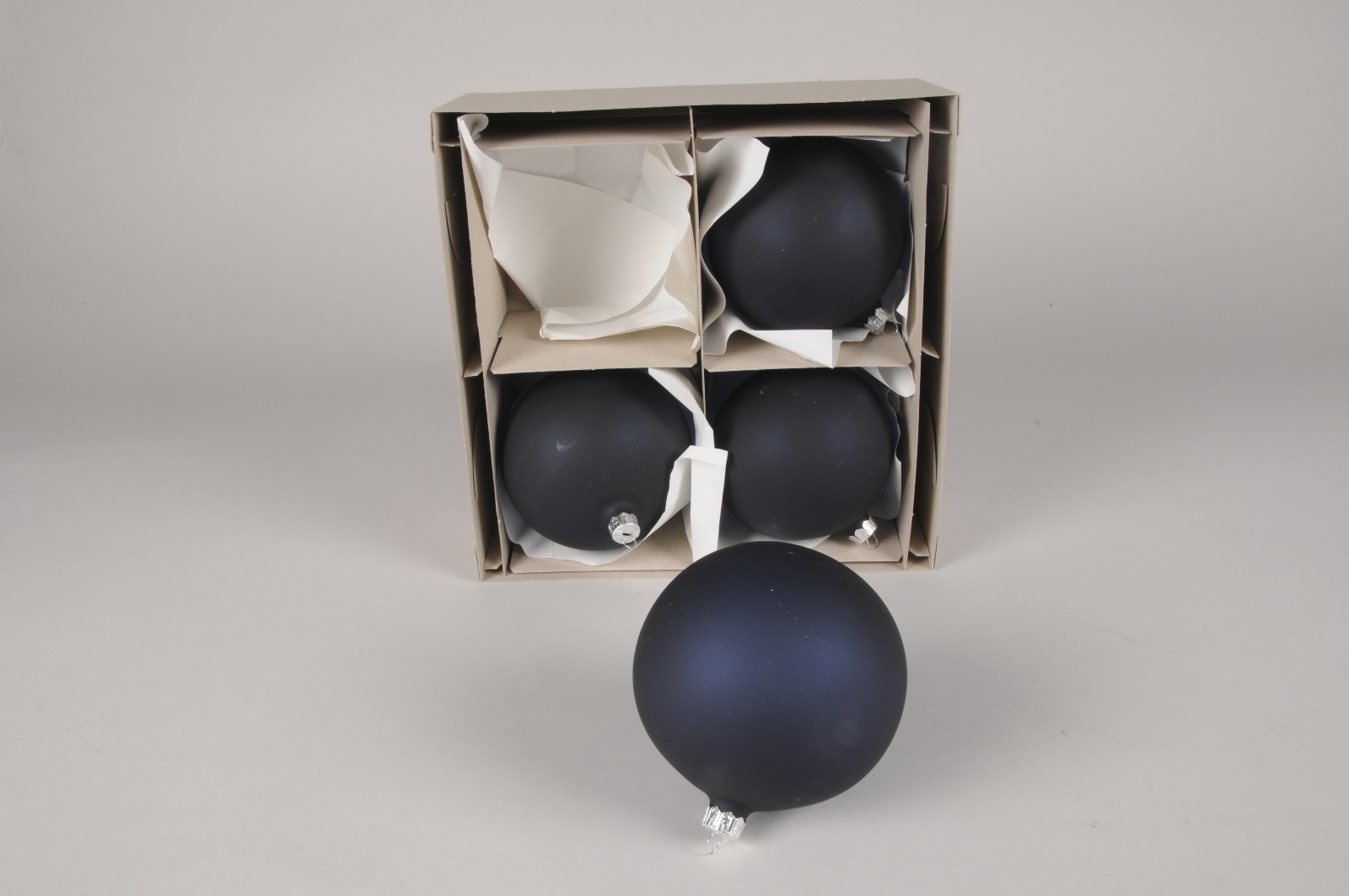 Box of 4 blue clear glass balls diameter 10cm