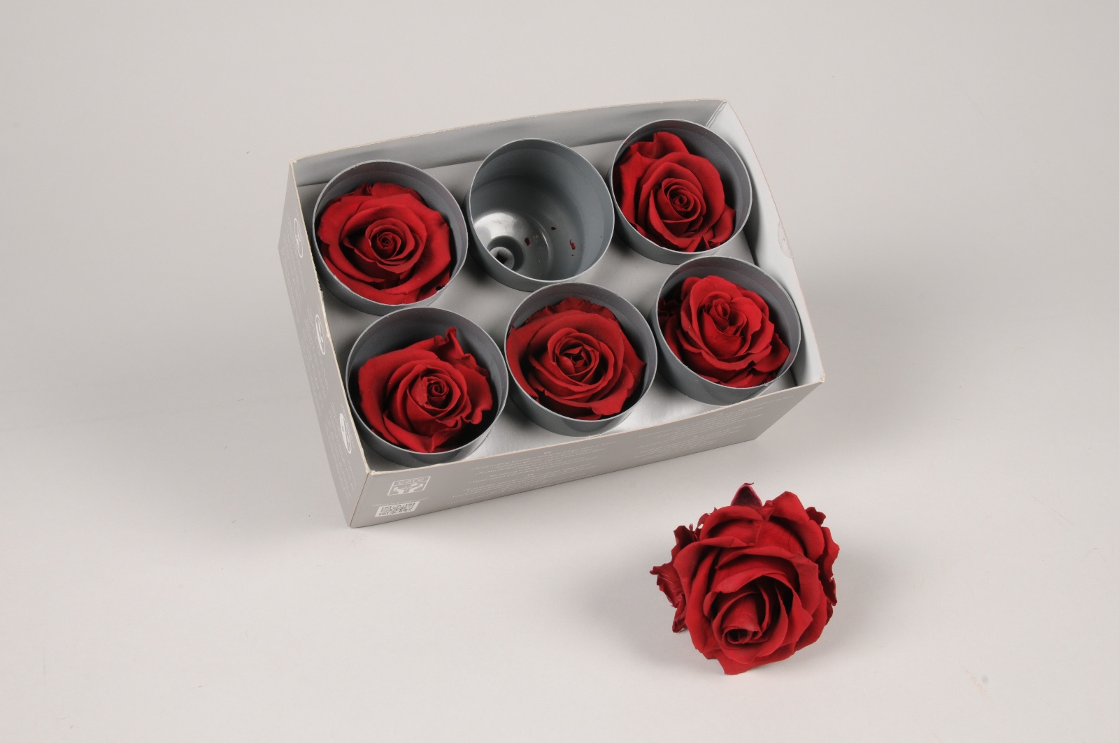Box of 6 red burgundy preserved roses diameter 5cm height 6cm