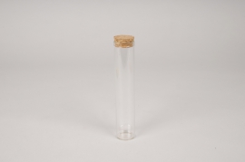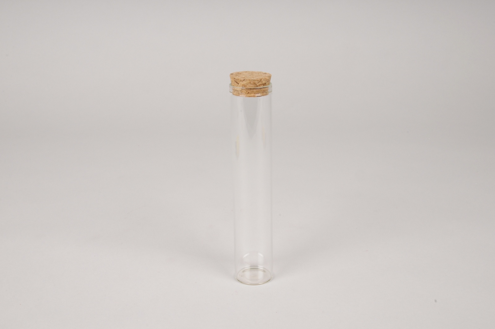 Box of 6 clear glass tubes with cork diameter 3cm height 15.5cm