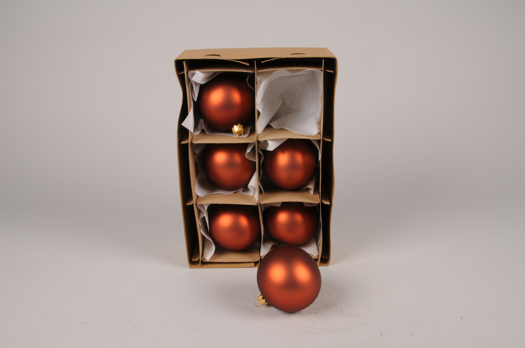 Box of 6 matte coppery orange glass balls diameter 8cm