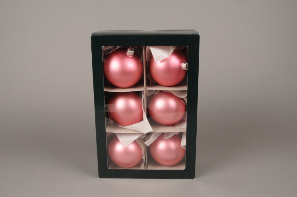 Box of 6 matte pink glass balls diameter 8cm