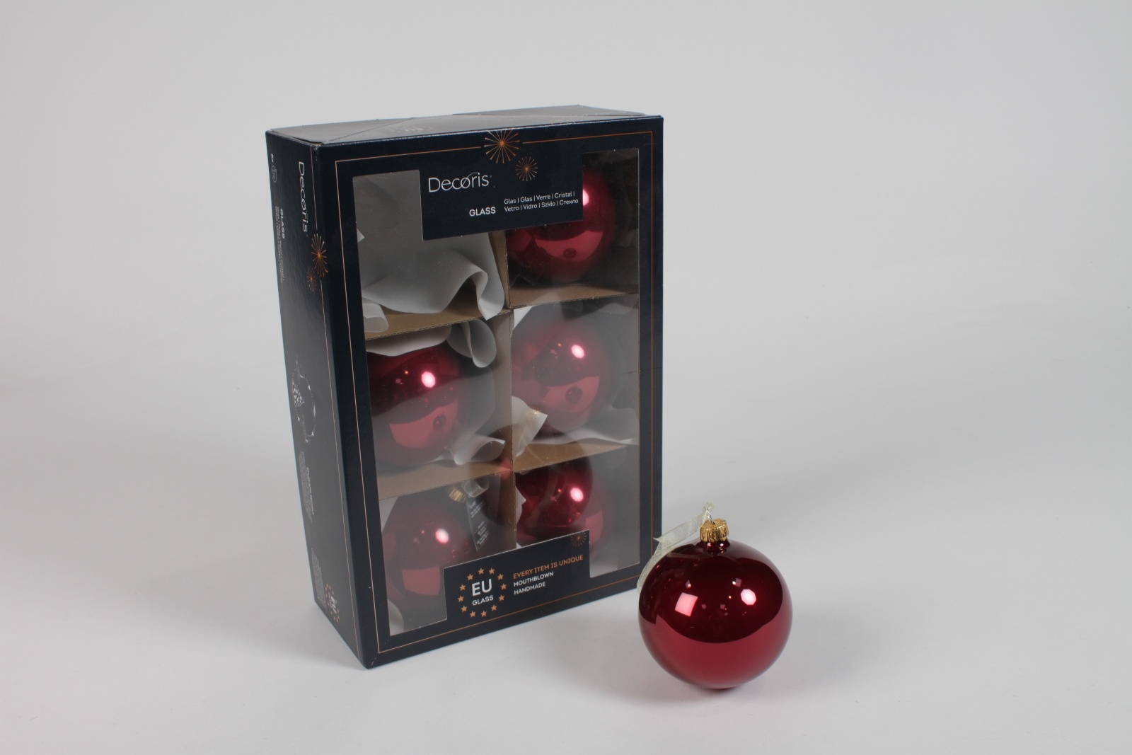 Box of 6 shiny cherry red glass balls diameter 8cm