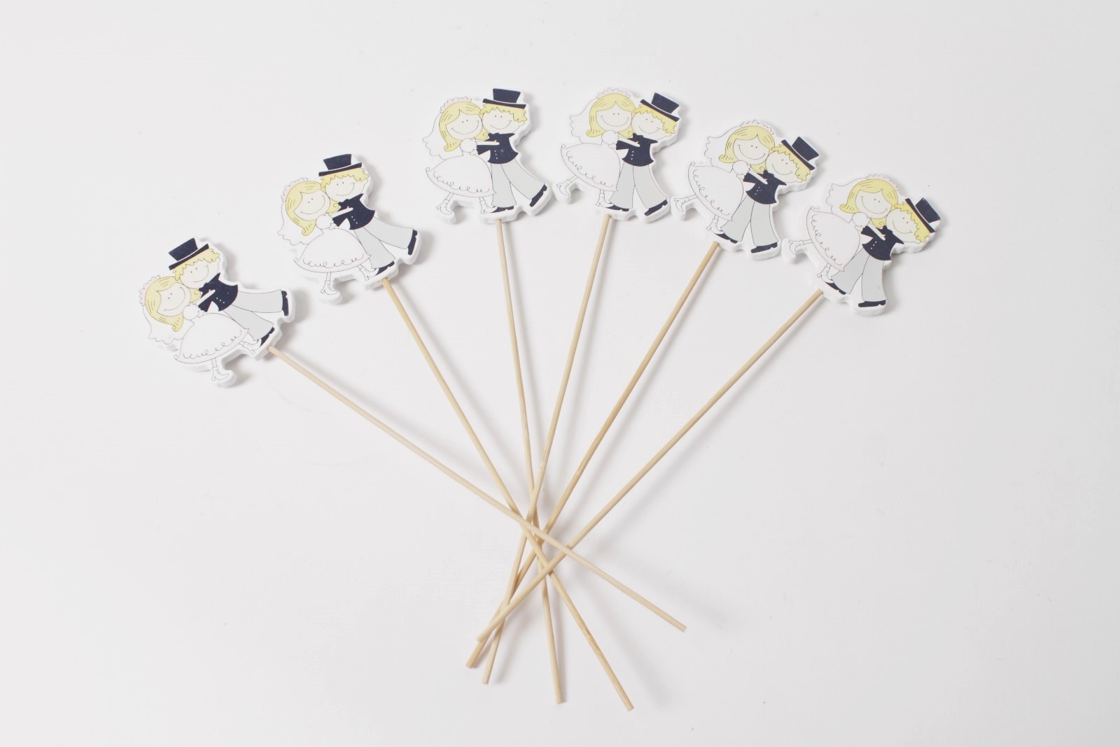 Box of 6 wooden wedding picks height 26cm Character dimensions width 5.5cm height 7cm