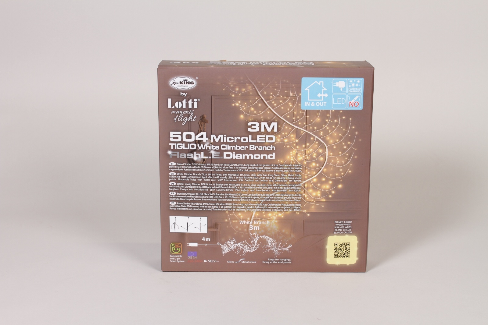 Accueil > Accessoires de décoration > Décoration lumineuse > Décoration lumineuse > Branche lumineuse blanc 504 microled blanc chaud 3m