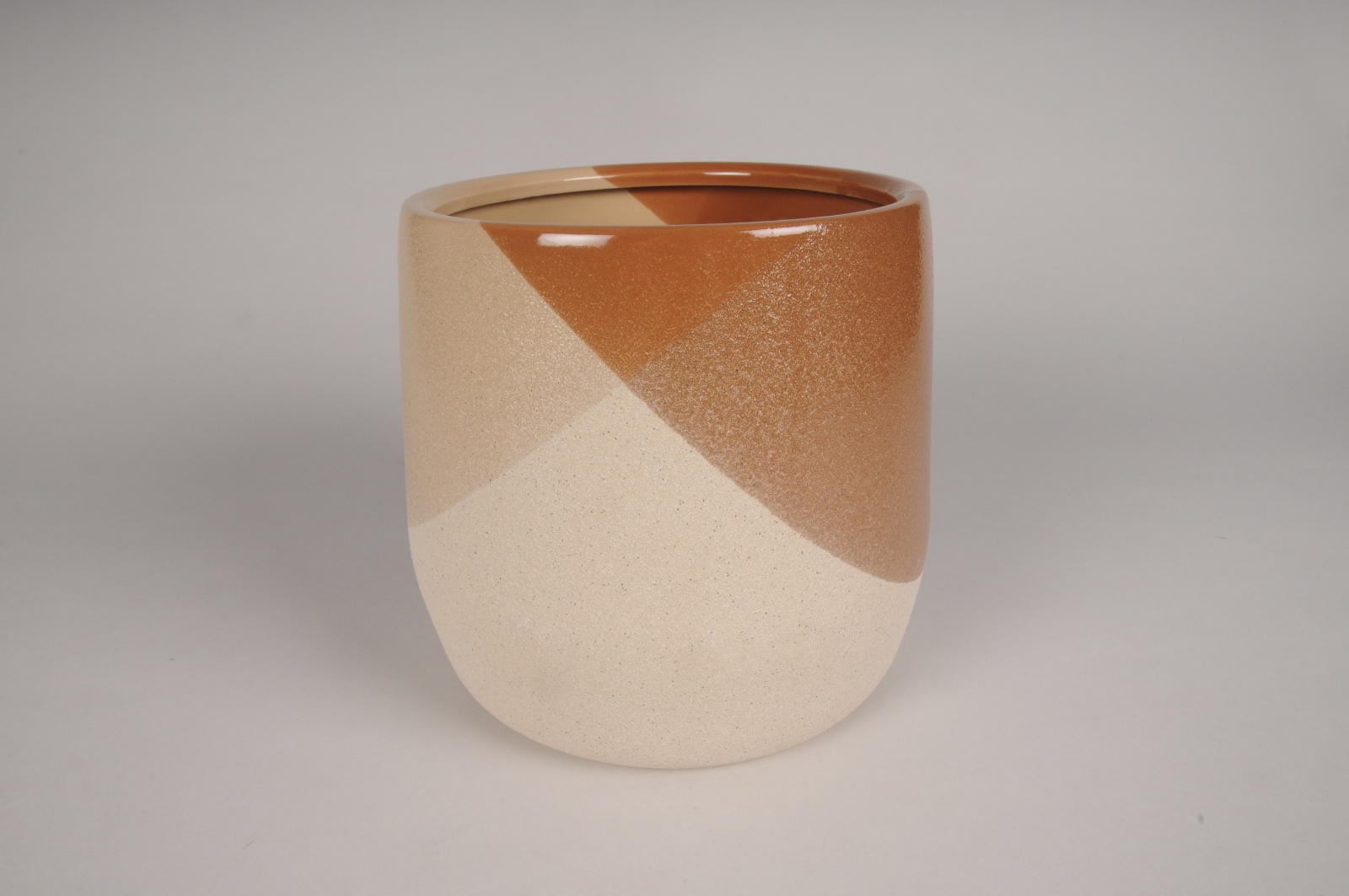 Brown, beige and sand ceramic planter diameter 21cm height 21cmInside diameter 17.5cmBase diameter 18cmRough appearance on the outside and smooth on the inside